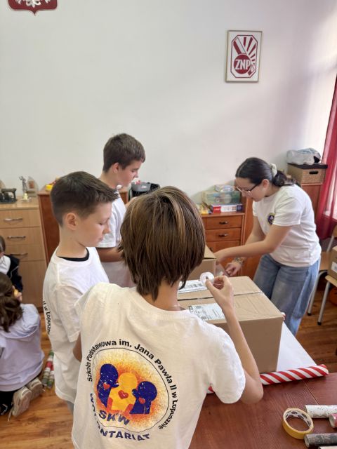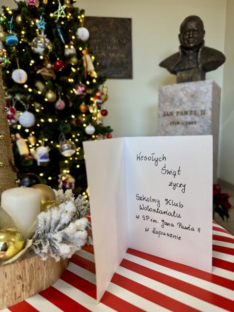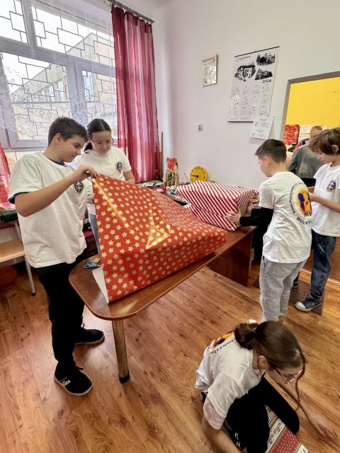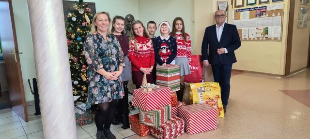 Dzięki środkom zebranym podczas Jarmarku Bożonarodzeniowego Szkolny Klub Wolontariatu przygotował świąteczne paczki dla dwóch rodzin z terenu gminy Łopuszno.