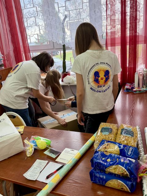Po zakończeniu charytatywnego Kiermaszu Wielkanocnego nasi wolontariusze przystąpili do kolejnego etapu działań – przygotowania oraz przekazania paczek dla osób potrzebujących.