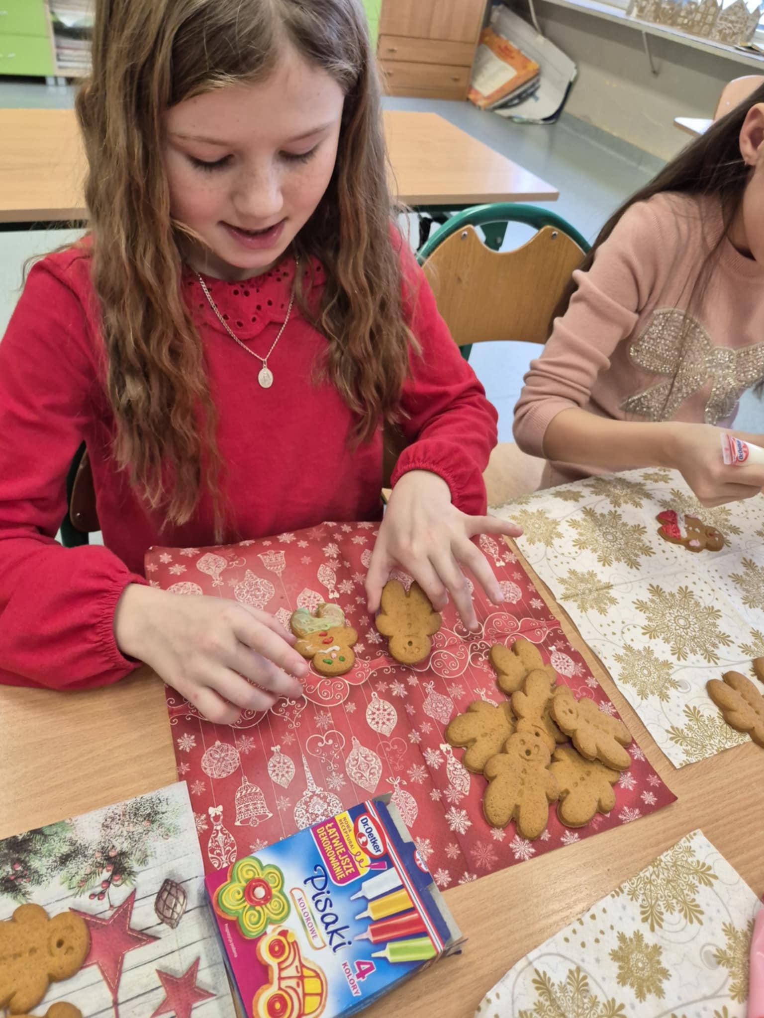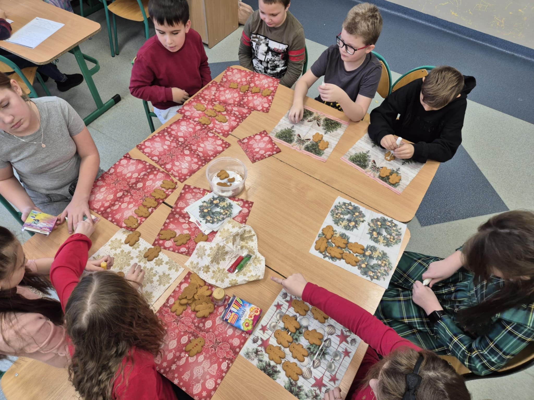 Nasi uczniowie, zarówno młodsi, jak i starsi, z zaangażowaniem przygotowywali się do Świąt Bożego Narodzenia. Powstały piękne, własnoręczne ozdoby z papieru oraz tradycyjne łańcuchy choinkowe. Szczególnie dużo serca włożyliśmy w redagowanie świątecznych życzeń, które ozdobiły stworzone przez nas, unikatowe kartki świąteczne.