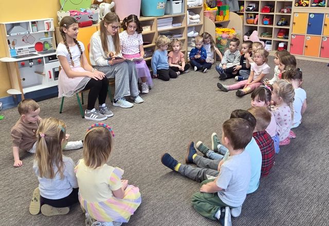 W oddziałach przedszkolnych naszej szkoły odbyło się wyjątkowe spotkanie czytelnicze. Uczennice należące do aktywu bibliotecznego przeczytały dzieciom baśń „Jaś i Małgosia” autorstwa Bracia Grimm.