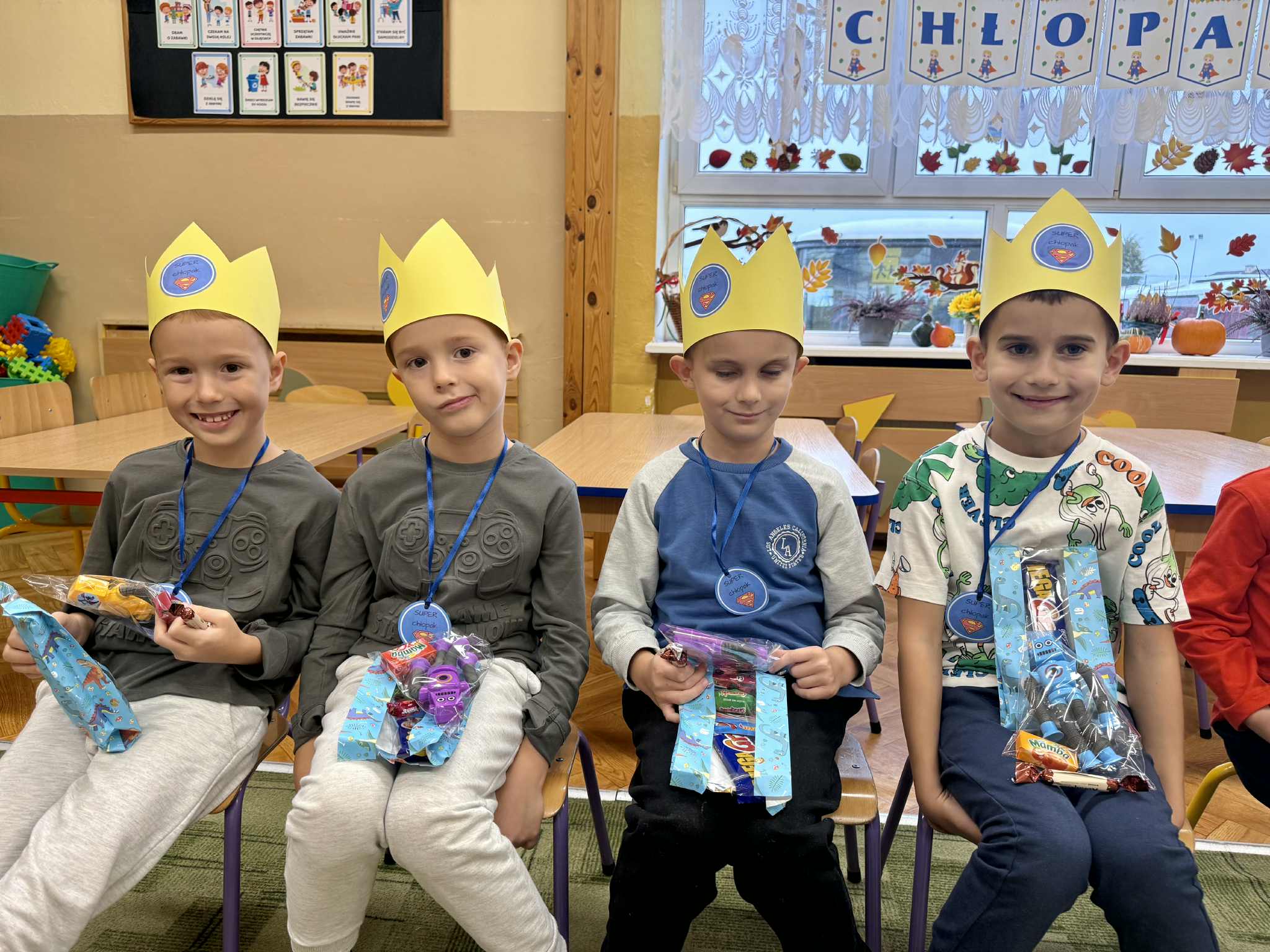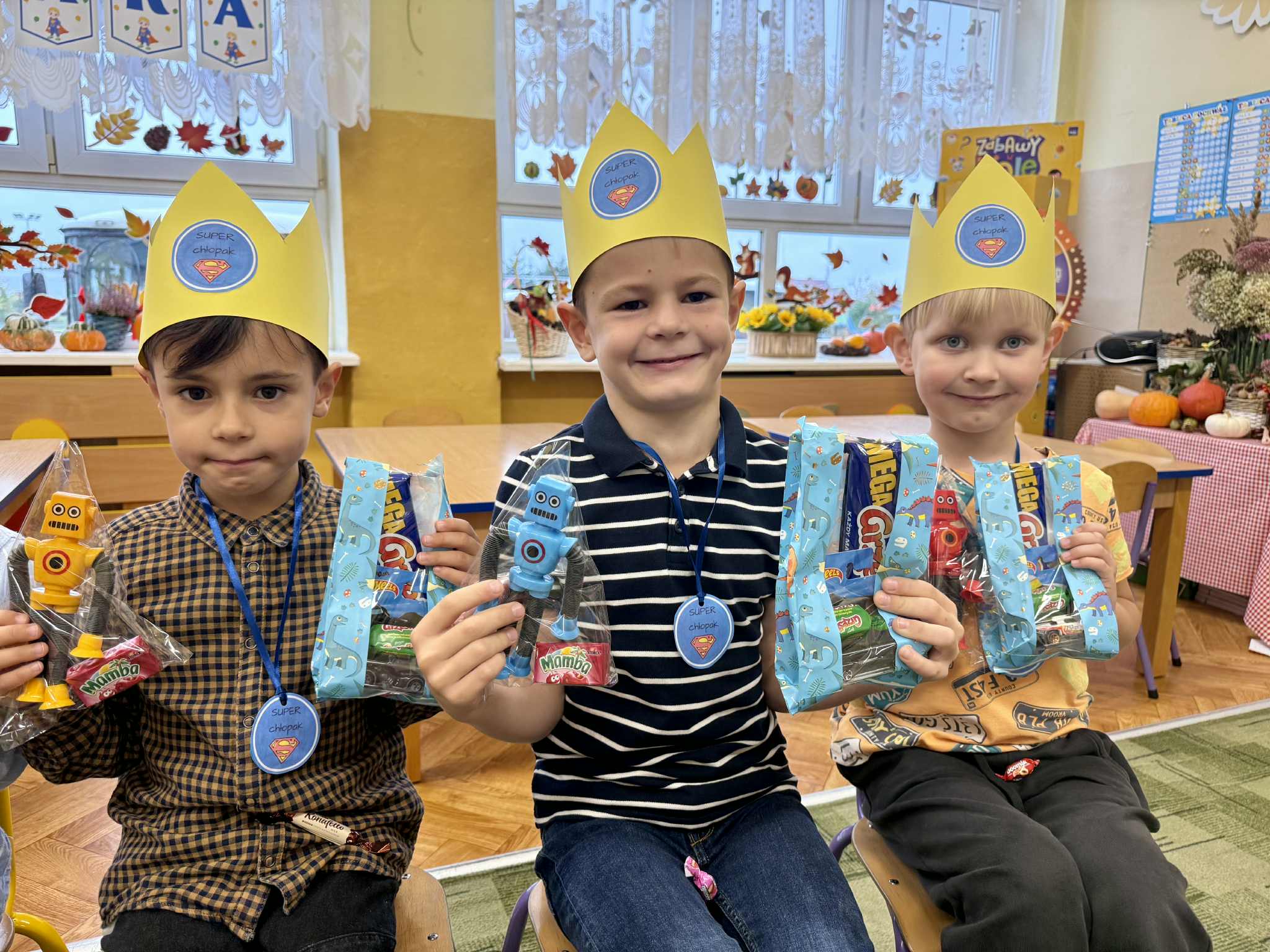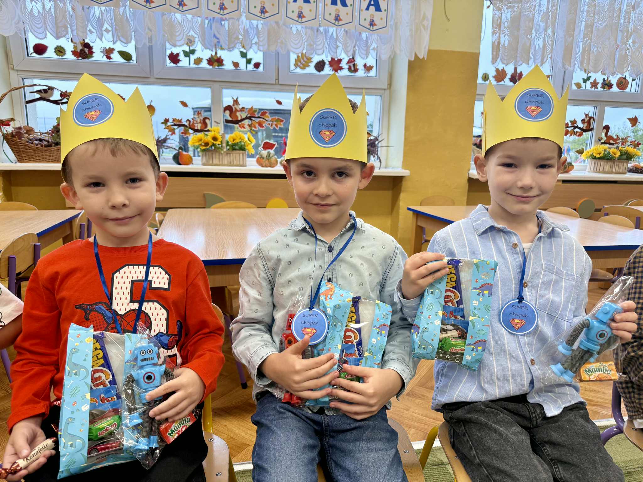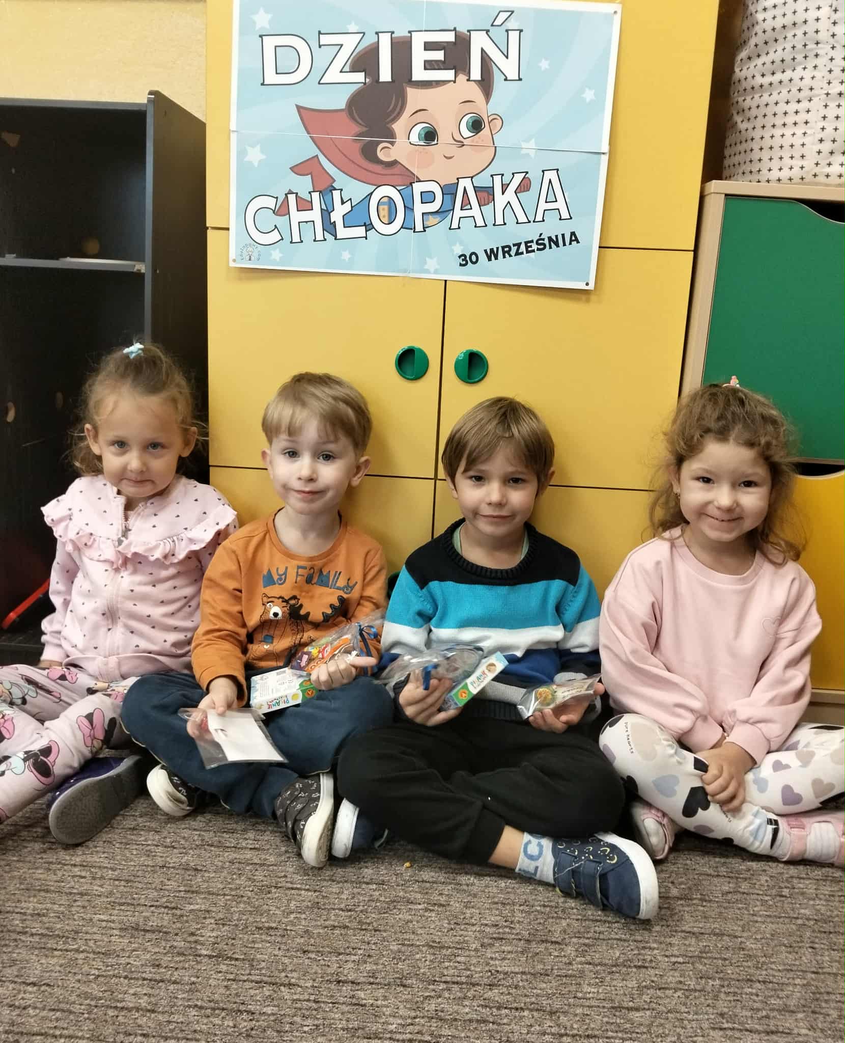 30 września chłopcy z naszego przedszkola obchodzili swoje święto. W tym dniu dziewczynki zaśpiewały swoim kolegom głośne „Sto lat!” oraz wręczyły im upominki. Przedszkolaki z radością brały udział w zaplanowanych dla nich atrakcjach. Wspólna zabawa bardzo podobała się naszym chłopcom o czym świadczyły ich zadowolone miny i szerokie uśmiechy. Wszystkim chłopcom jeszcze raz składamy najlepsze życzenia!
