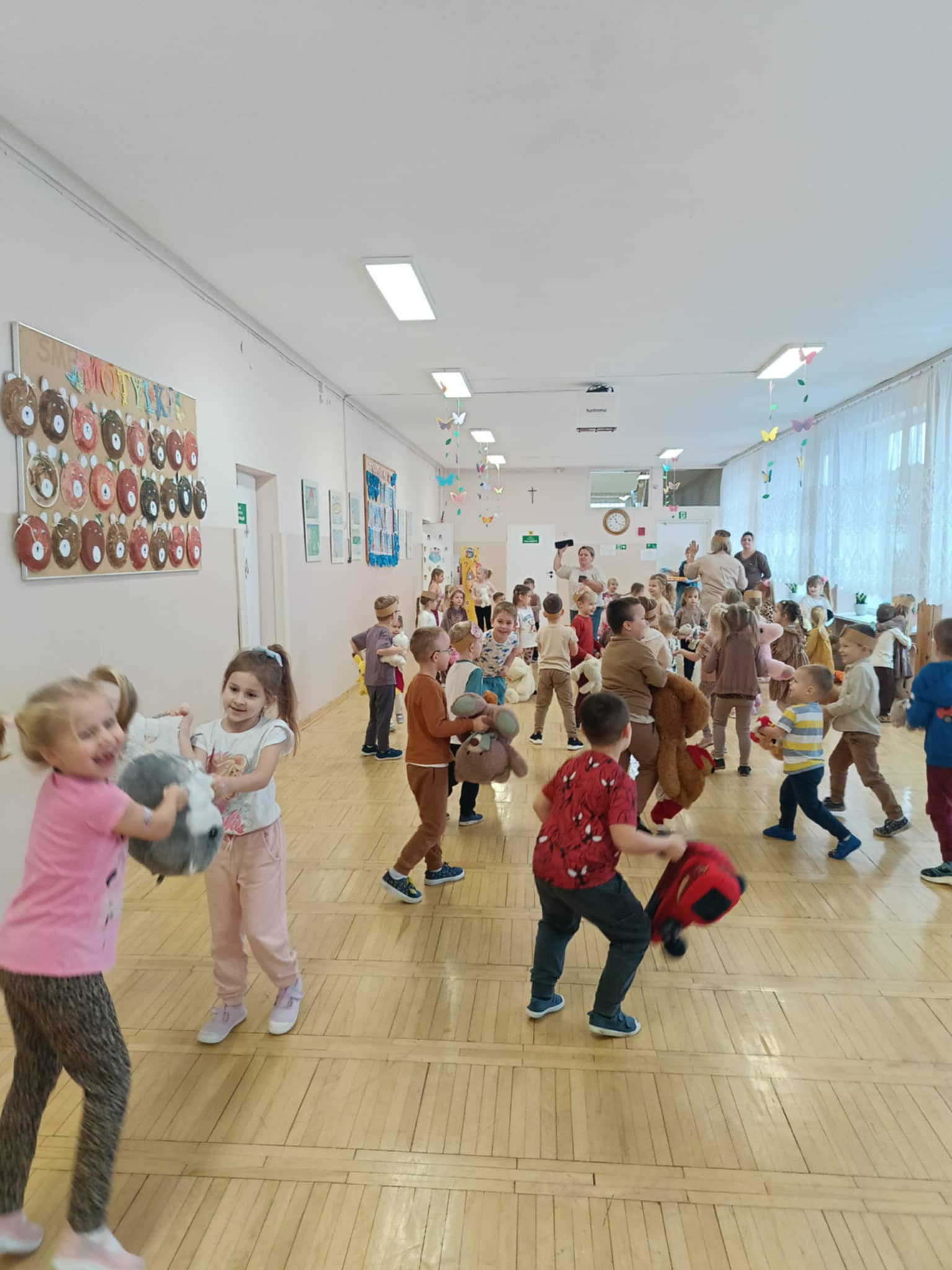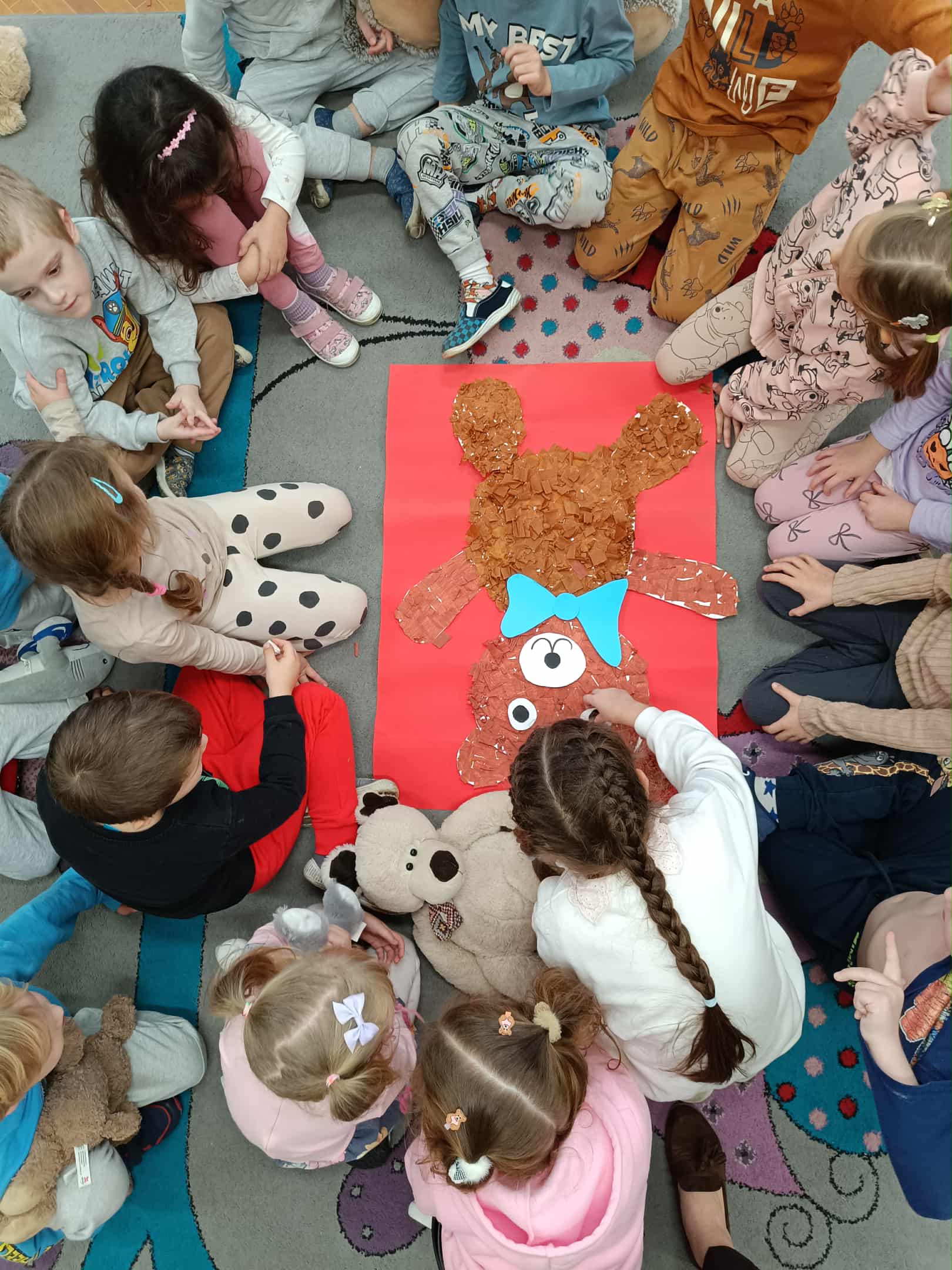 Aby uczcić Dzień Pluszowego Misia, we wtorek dzieci przyniosły do przedszkola swoje ulubione pluszaki.Przedszkolaki poznawały historię bohaterów tego dnia. Z radością uczestniczyły również w zabawach ze swoimi pluszowymi towarzyszami i śpiewały o nich piosenki.