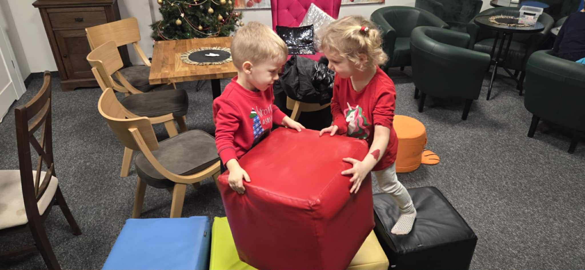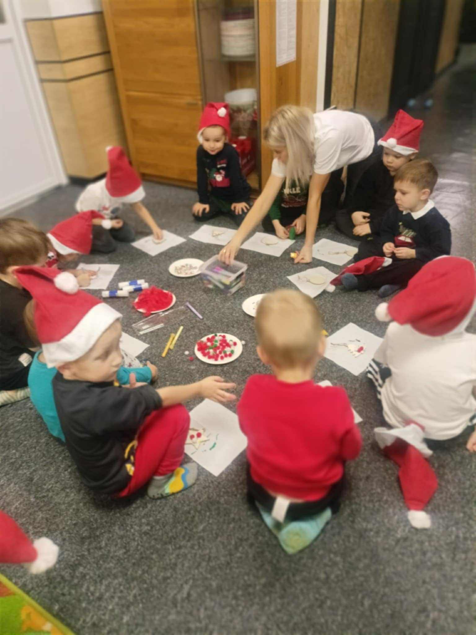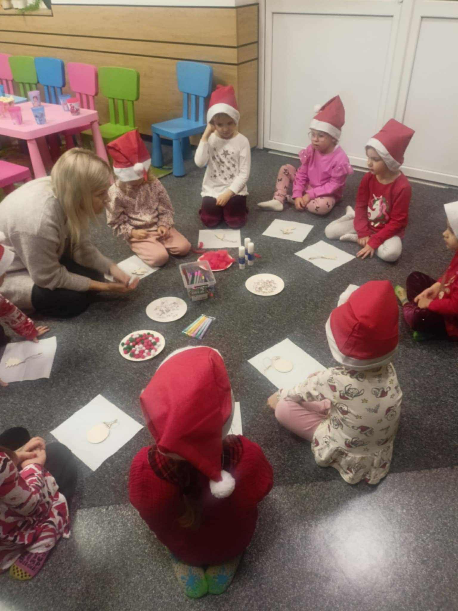 Dzieci z grupy ,,ŻABKI" spędziły niezwykle radosny i twórczy dzien w bawialni Figloraj. Podczas pobytu przedszkolaki korzystały z licznych atrakcji- basenów z kulkami, trampolin oraz konstrukcji wspinaczkowych, które dostarczyły im mnóstwo śmiechu i ruchu. Po wspólnej zabawie dzieci wzięły także udzial w warsztatach świątecznych. W trakcie zajęć tworzyły własnoręcznie ozdoby choinkowe, ćwiczyły zdolności manualne i rozwijały kreatywność. Każdy maluch wrócił do przedszkola z wyjątkową, samodzielnie wykonaną pamiątką. To był dzień pełen atrakcji, radości i świątecznej atmosfery.