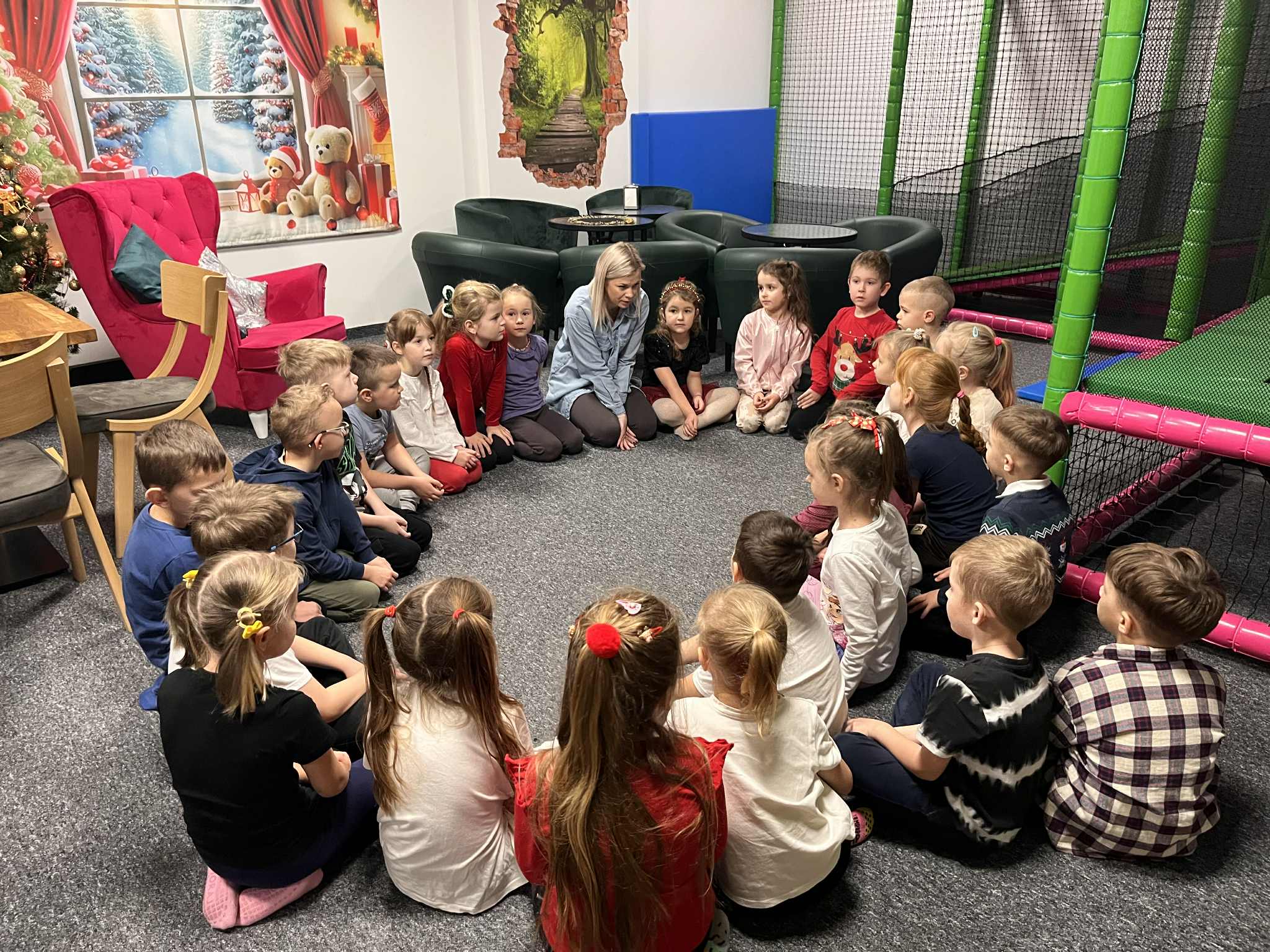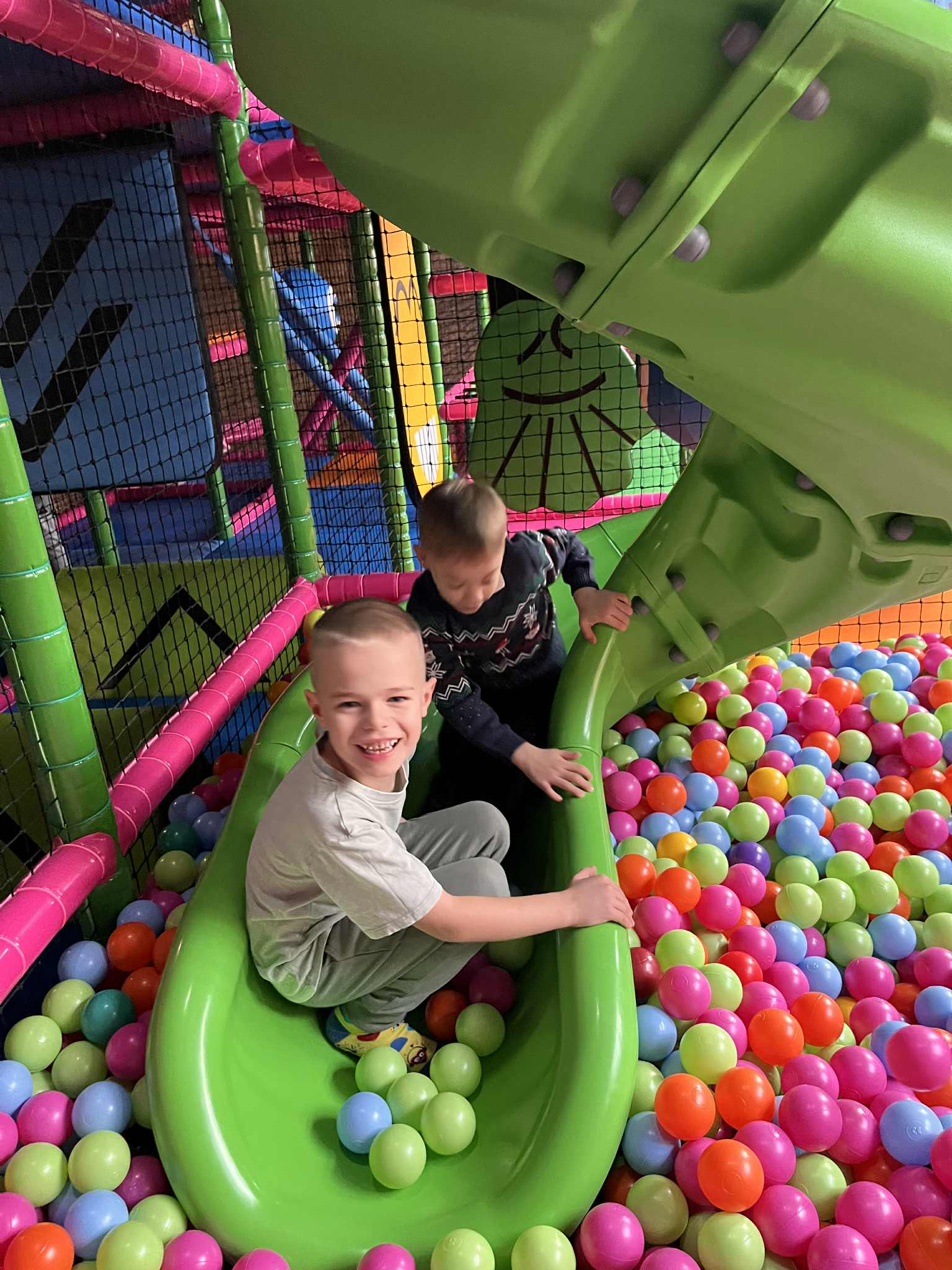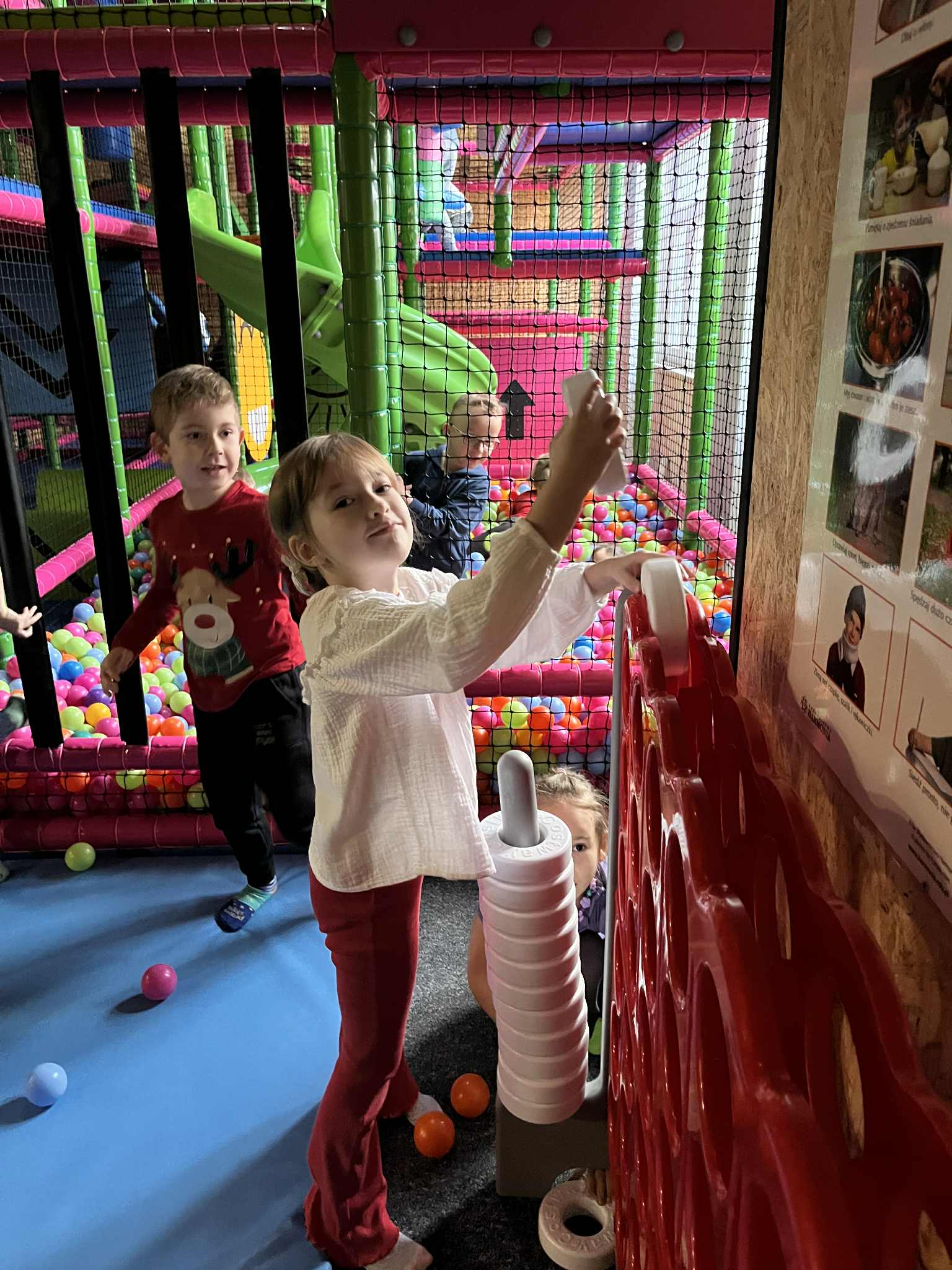 Przedszkolaki miały również okazję korzystać z wielu atrakcji – zjeżdżalni, toru przeszkód, basenu z piłeczkami oraz strefy wspólnej zabawy.