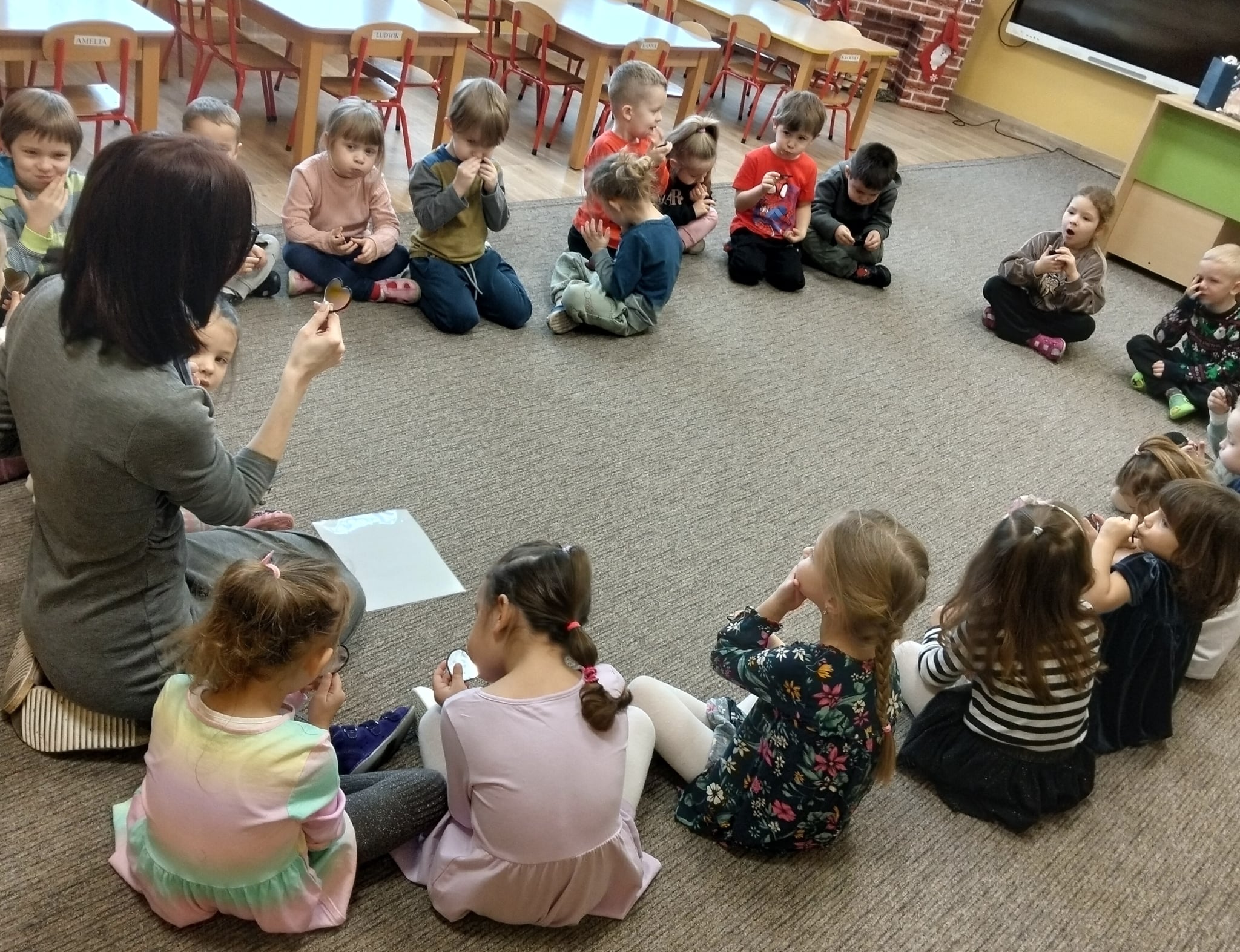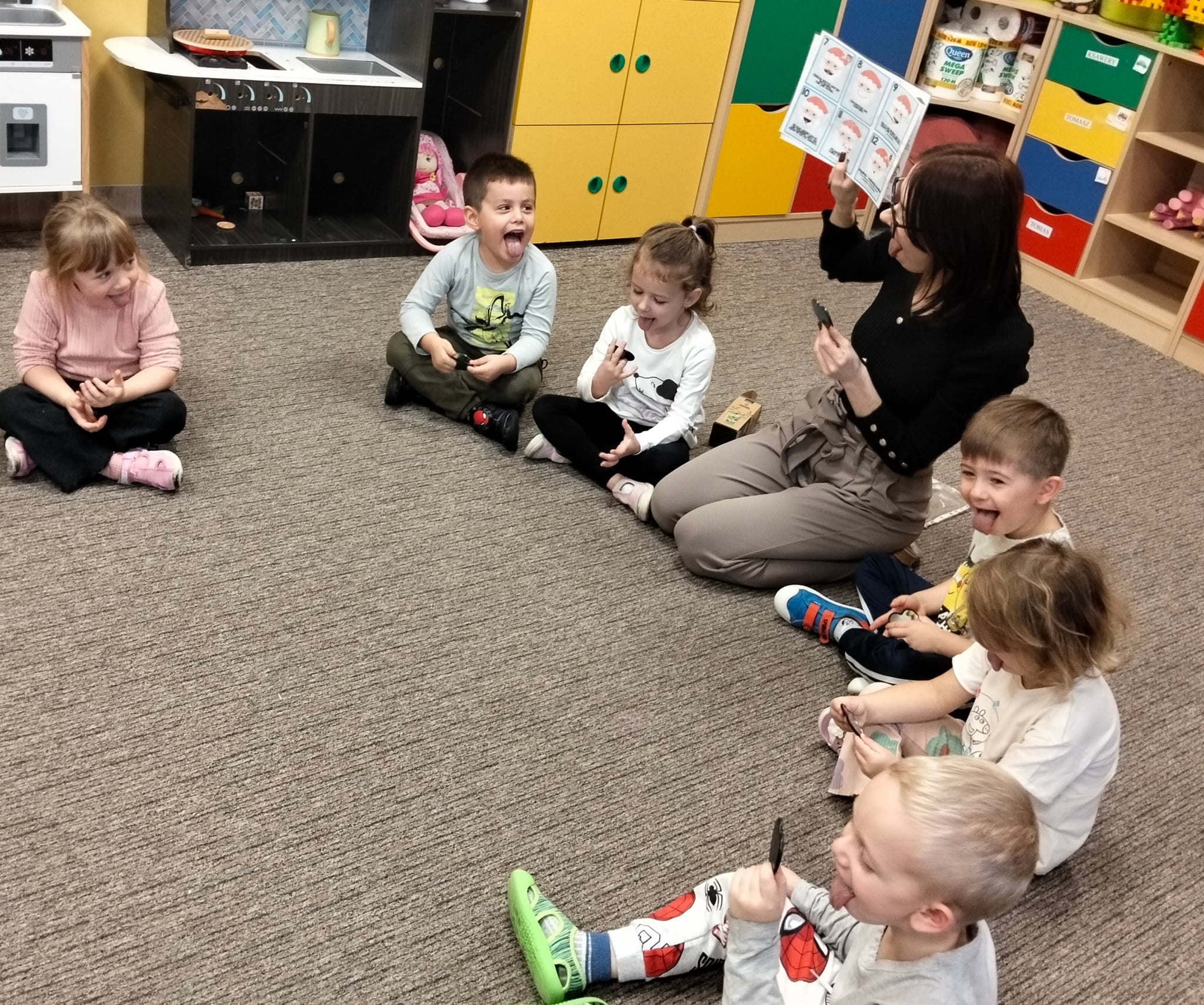 Od listopada w grupie „Wiewiórki” realizowana jest innowacja logopedyczna pt. „Język i buzie ćwiczymy i coraz piękniej mówimy”, której autorką jest Justyna Wiosło.