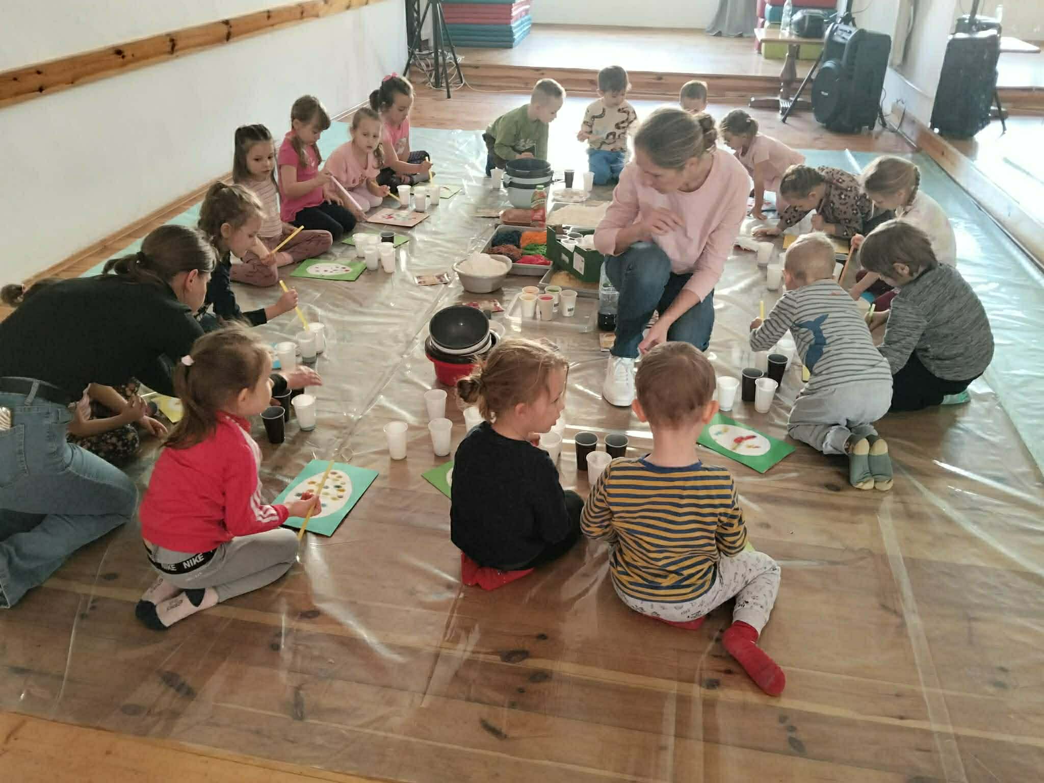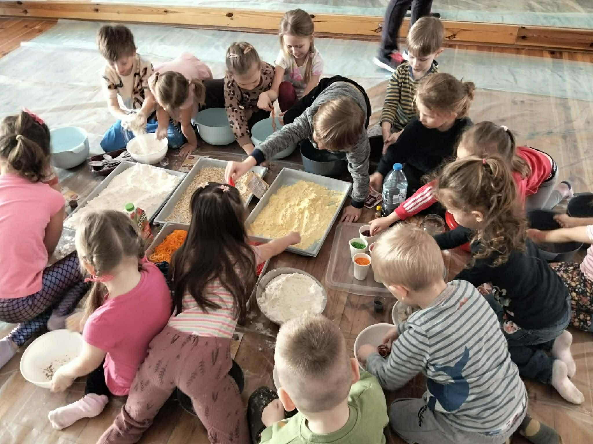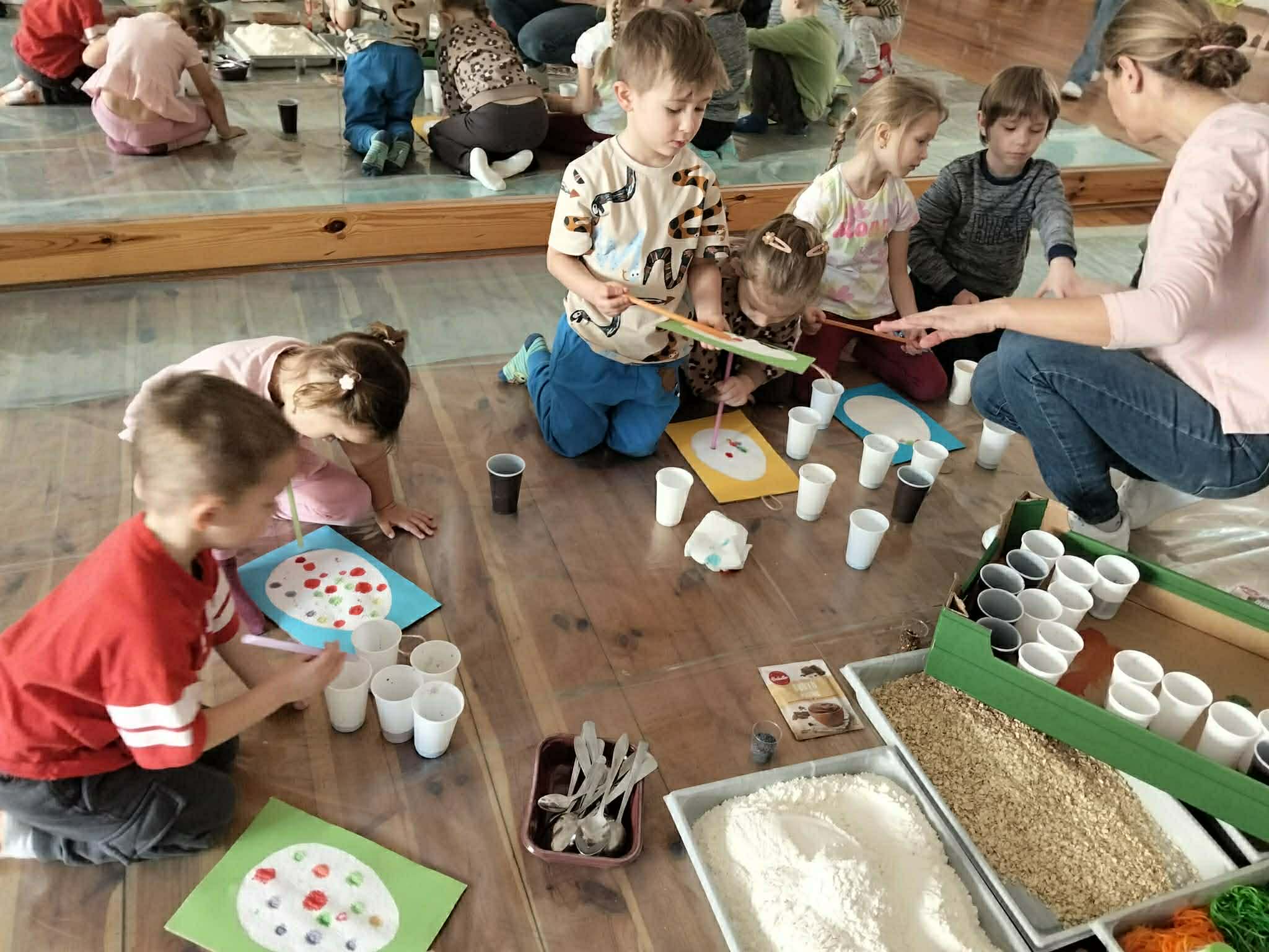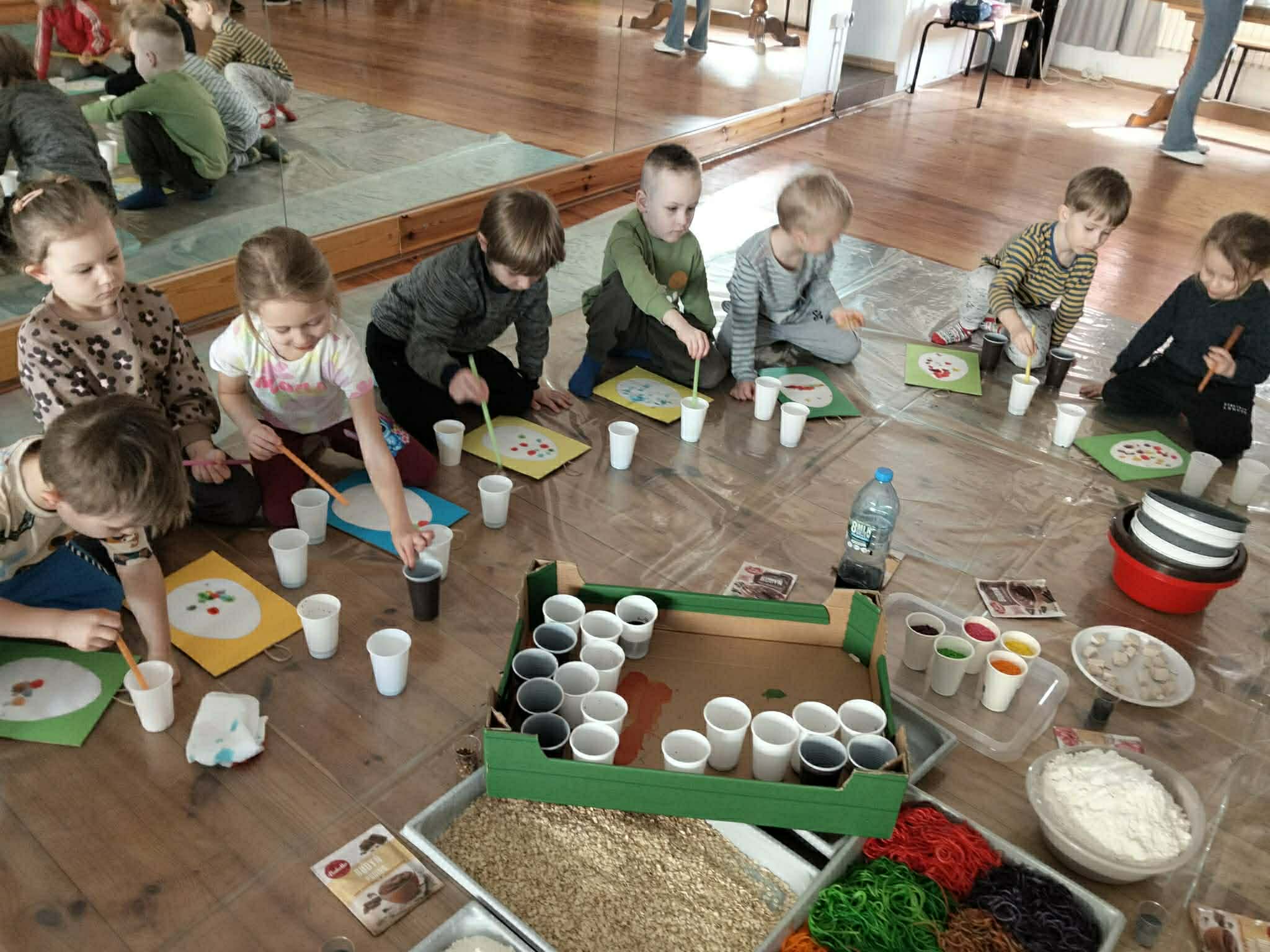 Środa, 11 marca, była dla naszych „Wiewiórek” dniem pełnym wrażeń, kolorów i nowych odkryć! Nasza grupa wybrała się z wizytą do Miejsko-Gminnego Ośrodka Kultury w Łopusznie, gdzie czekało na nas mnóstwo atrakcji. Naszą przygodę rozpoczęliśmy od niesamowitych warsztatów sensoplastycznych. Dzieci miały okazję tworzyć własne masy plastyczne z produktów spożywczych – badaliśmy faktury, zapachy i kolory. Przeprowadzać fascynujące eksperymenty, które wzbudziły mnóstwo radości i ciekawości. Przygotować piękne prace wielkanocne, które wprowadziły nas w świąteczny nastrój. Po intensywnych warsztatach przyszedł czas na chwilę wyciszenia w świecie literatury. Dla wielu „Wiewiórek” była to pierwsza wizyta w Bibliotece. Podczas spotkania dzieci poznały zasady panujące wśród regałów i dowiedziały się, jak dbać o książki. Z zaciekawieniem wysłuchały bajek czytanych przez panią bibliotekarkę. Obejrzały wyjątkowy wielkanocny teatrzyk, który był idealnym zwieńczeniem tego pełnego wrażeń dnia.