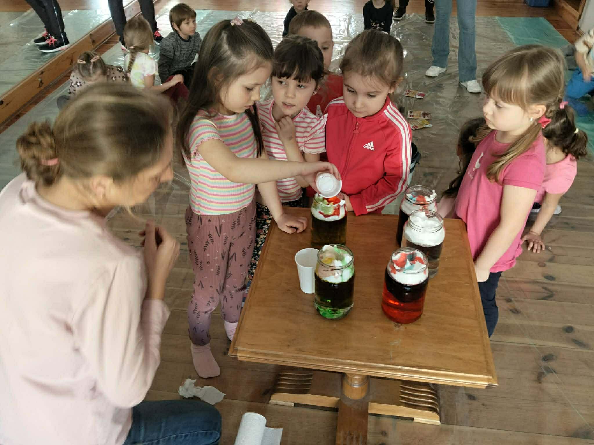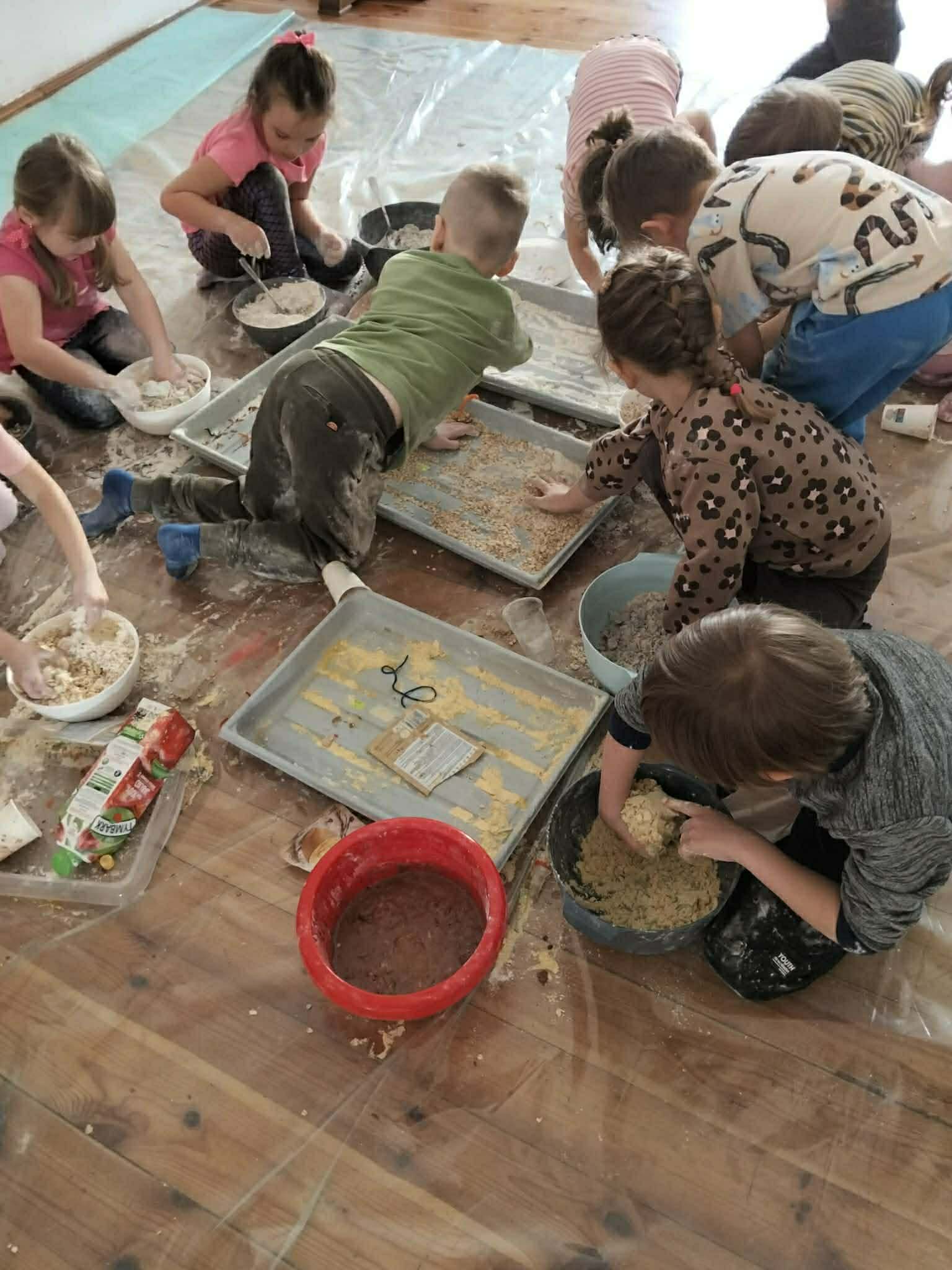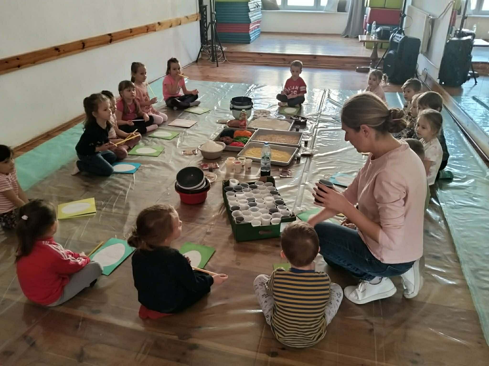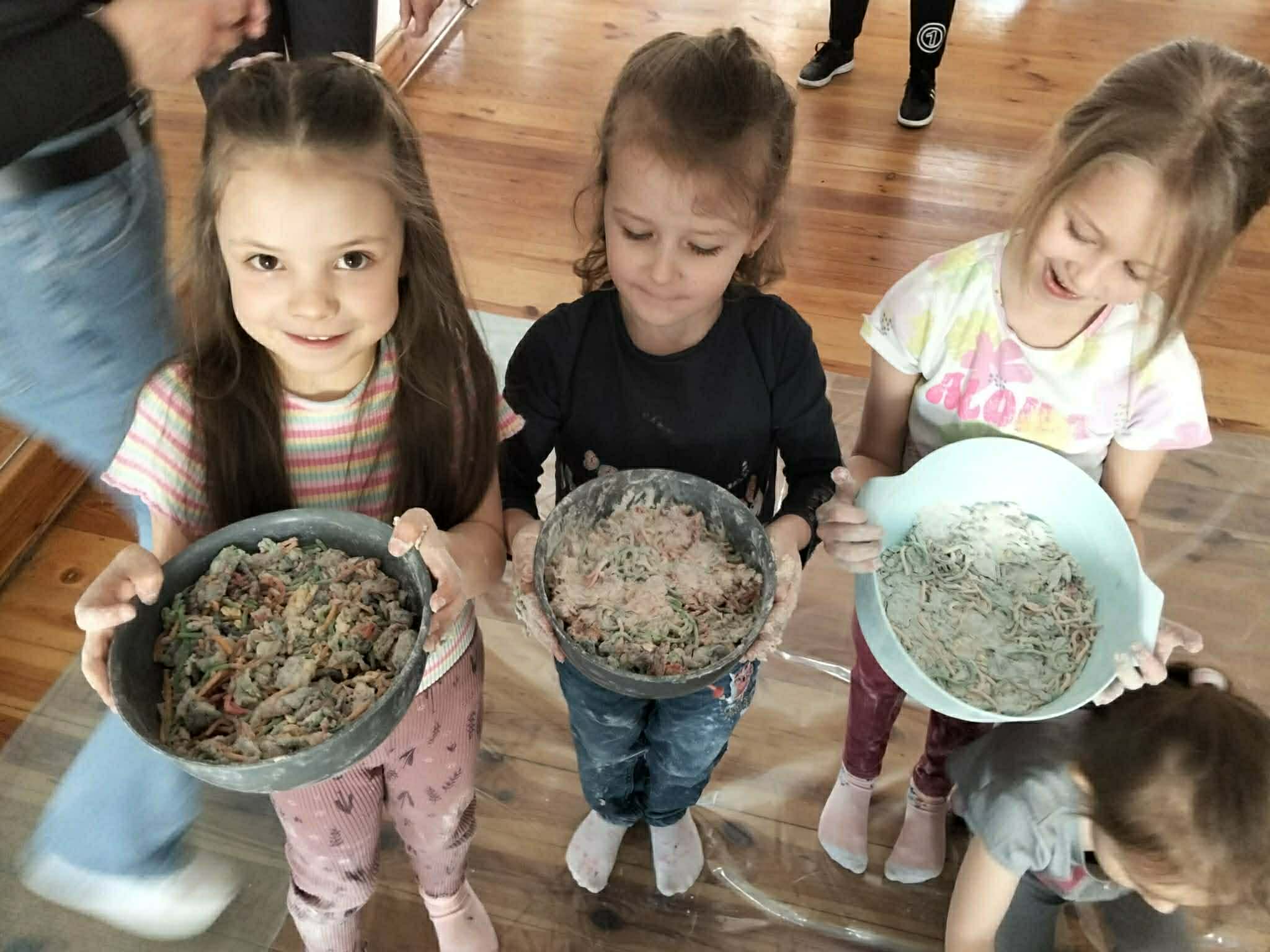 Środa, 11 marca, była dla naszych „Wiewiórek” dniem pełnym wrażeń, kolorów i nowych odkryć! Nasza grupa wybrała się z wizytą do Miejsko-Gminnego Ośrodka Kultury w Łopusznie, gdzie czekało na nas mnóstwo atrakcji. Naszą przygodę rozpoczęliśmy od niesamowitych warsztatów sensoplastycznych. Dzieci miały okazję tworzyć własne masy plastyczne z produktów spożywczych – badaliśmy faktury, zapachy i kolory. Przeprowadzać fascynujące eksperymenty, które wzbudziły mnóstwo radości i ciekawości. Przygotować piękne prace wielkanocne, które wprowadziły nas w świąteczny nastrój. Po intensywnych warsztatach przyszedł czas na chwilę wyciszenia w świecie literatury. Dla wielu „Wiewiórek” była to pierwsza wizyta w Bibliotece. Podczas spotkania dzieci poznały zasady panujące wśród regałów i dowiedziały się, jak dbać o książki. Z zaciekawieniem wysłuchały bajek czytanych przez panią bibliotekarkę. Obejrzały wyjątkowy wielkanocny teatrzyk, który był idealnym zwieńczeniem tego pełnego wrażeń dnia.