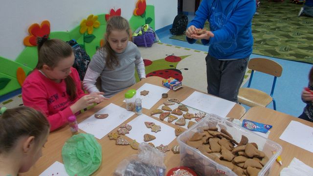 W piątek 9 grudnia 2016 roku odbyło się spotkanie członków klubu 4- H w trakcie którego mieli okazję nauczyć się wypieku pysznych świątecznych pierniczków. Uczniowie z wielką radością wałkowali przygotowane wcześniej przez panią G. Matuszczyk ciasto, wycinali foremkami ulubione kształty, z uwagą obserwowali proces pieczenia się ciasteczek. Upieczone pierniczki zostały udekorowane kolorowymi posypkami, perełkami oraz lukrem. Takie zajęcia sprawiły wszystkim wiele radości. Pragnąc podzielić się pysznymi ciasteczkami dzieci przygotowały piernikowe prezenciki, które Mikołaj wraz z serdecznymi życzeniami Wesołych Świąt wręczył wszystkim zebranym na szkolnej Wigilii. Koordynatorem tej akcji była pani W. Bajkowska.