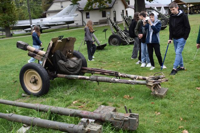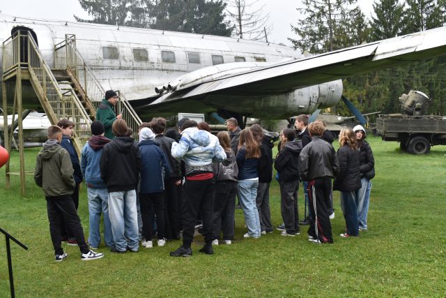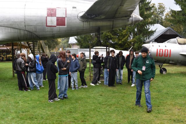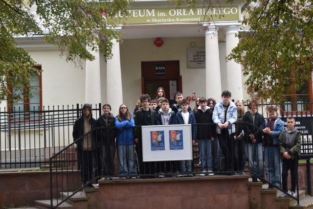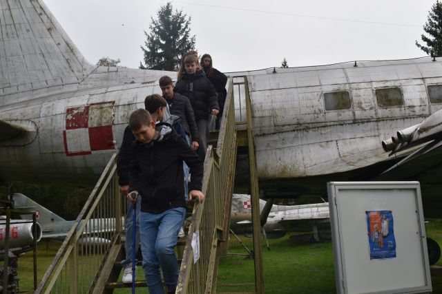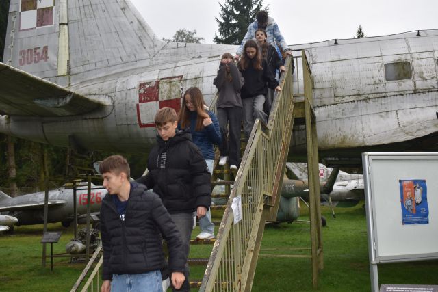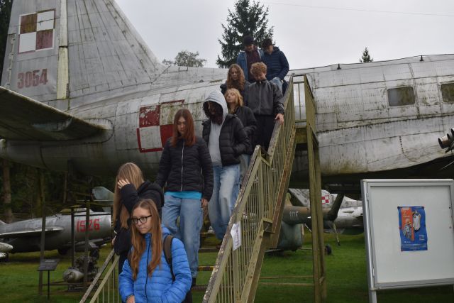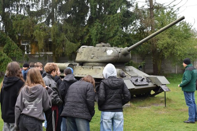 Dnia 9. X. 2025 r. uczniowie kl. VIII „b” zwiedzili Muzeum im. Orła Białego w Skarżysku- Kamiennej. Nazwa muzeum nie jest przypadkowa. Upamiętnia organizację konspiracyjną ,,Orzeł Biały’’, która powstała na początku II wojny światowej. Niemcy większość członków zdekonspirowali i zamordowali w 1940 roku. Eksponaty wewnątrz budynku i ekspozycja plenerowa zrobiły na uczniach duże wrażenie. Na placu o pow. 1,5 ha zgromadzono eksponaty z czasów II wojny światowej i okresu PRL na wyposażeniu armii polskiej, niemieckiej i radzieckiej (samoloty, czołgi, armaty , haubice, kuter torpedowy, pojazdy techniczne). Przewodnik opowiadał o możliwościach tych pojazdów. Znajduje się tu czołg T – 34. Ten typ czołgu brał udział w kręceniu filmu ,,Czterej pancerni i pies”. W serialu tym jest scena, w której aktor Wojciech Siemion wpadł do kuchni wojskowej. To właśnie ta jednogarnkowa kuchnia znajduje się w muzeum. Uczniowie weszli również na pokład kutra torpedowego, noszący w okresie swojej służby imię ORP ,,Odważny”. Zanim trafił do muzeum 13 lat służył w 2. Dywizjonie Kutrów Rakietowo – Torpedowych. Okręty tego typu należały do najszybszych jednostek pływających po Bałtyku (wykorzystywany był podczas kręcenia filmu ,,Akademia Pana Kleksa”). Fajnie było poczuć się za sterami samolotu desantowego na miejscu pilota lub nawigatora. Na placu znajduje się jeden z najlepiej zachowanych dział samobieżnych Panzerkampfwagen IV zniszczone w czasie walk w styczniu 1945 roku. Uczniowie poznali elementy radzieckiego systemu obrony przeciwlotniczej. Po zwiedzeniu części plenerowej, udaliśmy się do budynku zawiadowcy dawnej Huty Rejów. Tam uczniowie oglądali wystawę poświęconą wyposażenia wojska w broń białą i mundury. Wycieczka była połączeniem przygody z nauką. Wiele z tych eksponatów uczniowie widzieli tylko w filmach, a teraz mogli je zobaczyć na żywo i zrobić zdjęcia. Muzeum Orła Białego to miejsce, które warto odwiedzić.