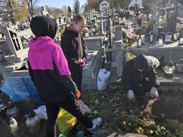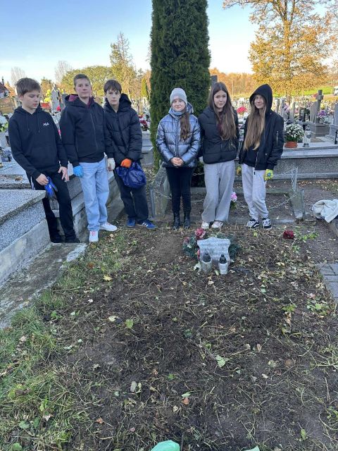 W dniu 31 października wolontariusze ze Szkolnego Klubu Wolontariatu wzięli udział w akcji porządkowania zaniedbanych grobów na miejscowym cmentarzu w ramach ogólnopolskiej inicjatywy „Szkoła Pamięta”.