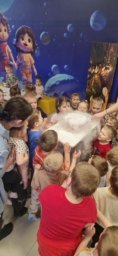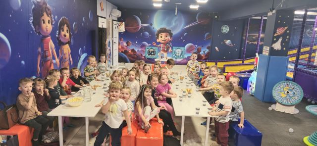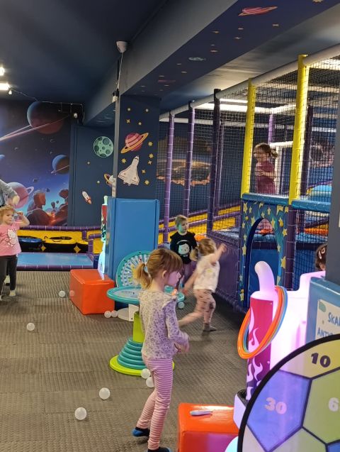 W miniony piątek nasze przedszkolaki wybrały się na wycieczkę do bawialni „Planeta Rozrywki” w Jędrzejowie. Dzieci spędziły tam wspaniały czas, pełen radości i zabawy. Dodatkową atrakcją były pokazy magiczne z wykorzystaniem suchego lodu – powstawały efektowne bańki oraz tajemniczy, magiczny dym, który wzbudził ogromne zainteresowanie i zachwyt wśród najmłodszych.