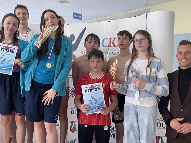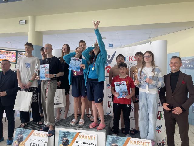 W naszej ekipie rewelacyjnie spisał się Ignacy Dzwonek – uczeń klasy 2 b, który na dystansie 25 m stylem dowolnym zajął I miejsce. Bardzo dobrze wypadła również sztafeta mieszana w składzie: Aleksandra Woś, Jakub Strużyk, Eryk Soboń i Patryk Kapała. Uczniowie Ci na dystansie 4 x 50 m stylem dowolnym wywalczyli III miejsce. Zawodnicy otrzymali puchary, nagrody rzeczowe oraz pamiątkowe medale. Wszystkim serdeczne gratulujemy i życzymy dalszych sukcesów.